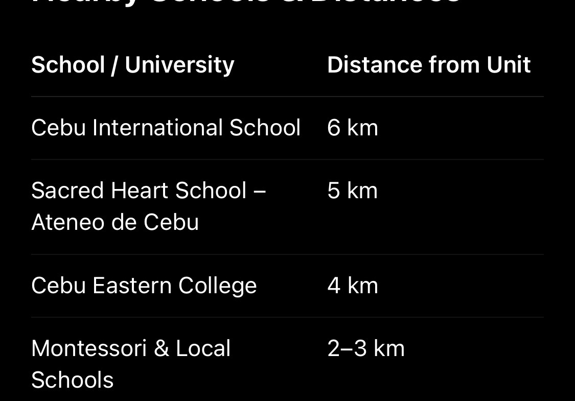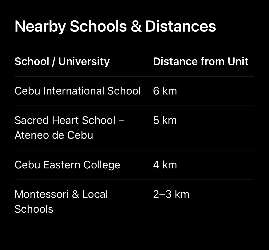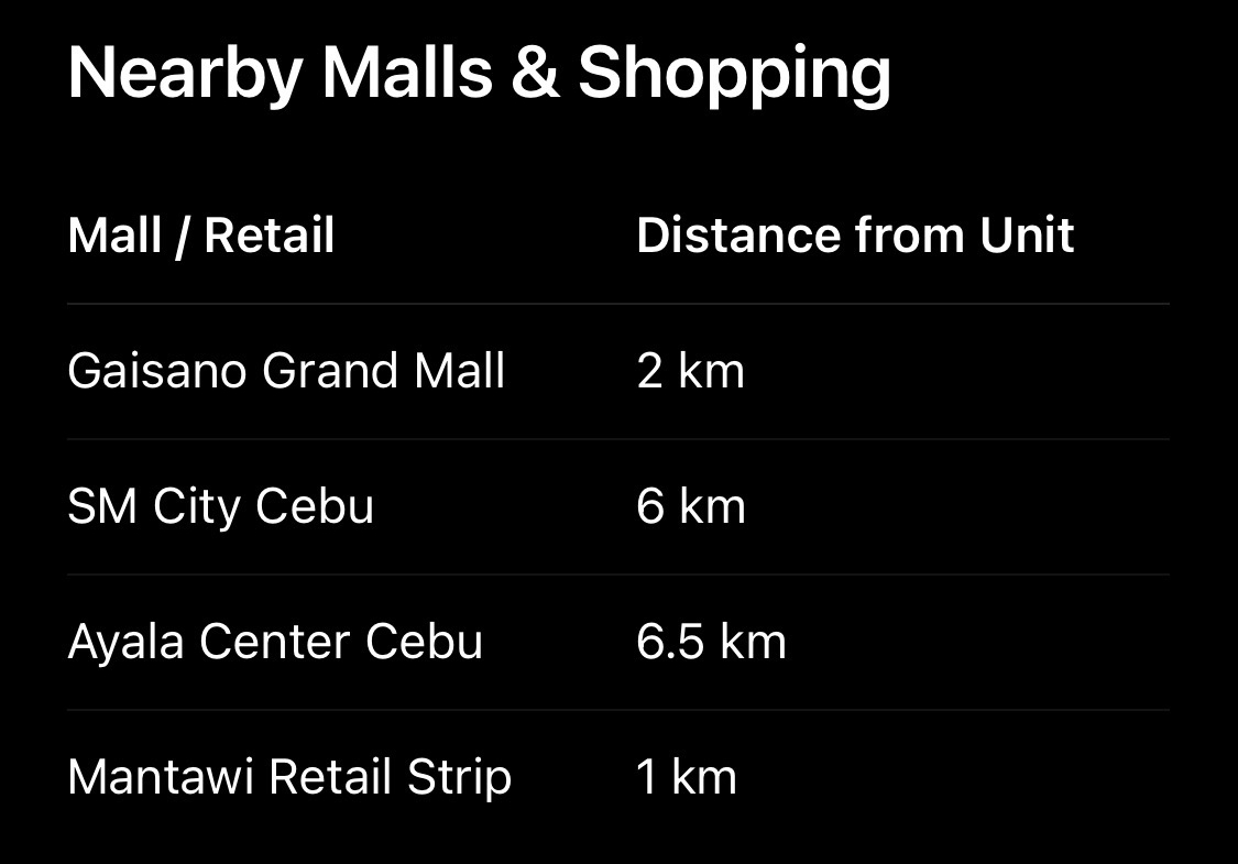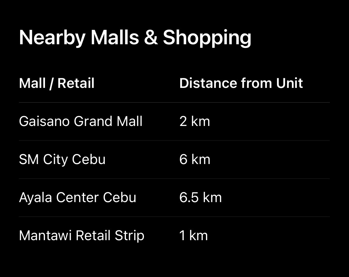 - Cebu IT Park – 8 km (~15–20 mins drive)