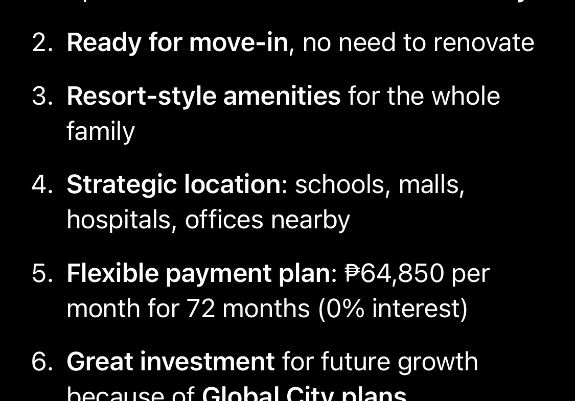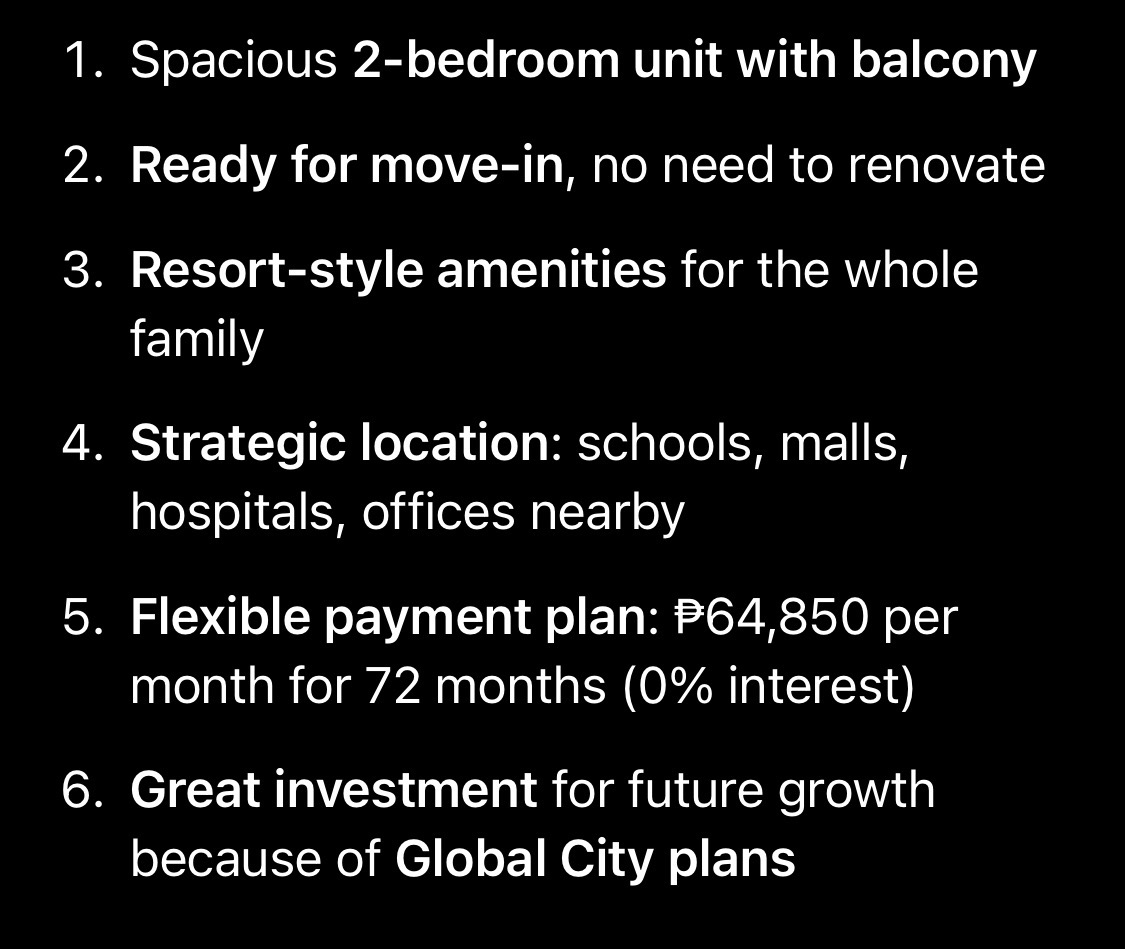 - Investment potential – part of future Global City, high rental demand, and property appreciation